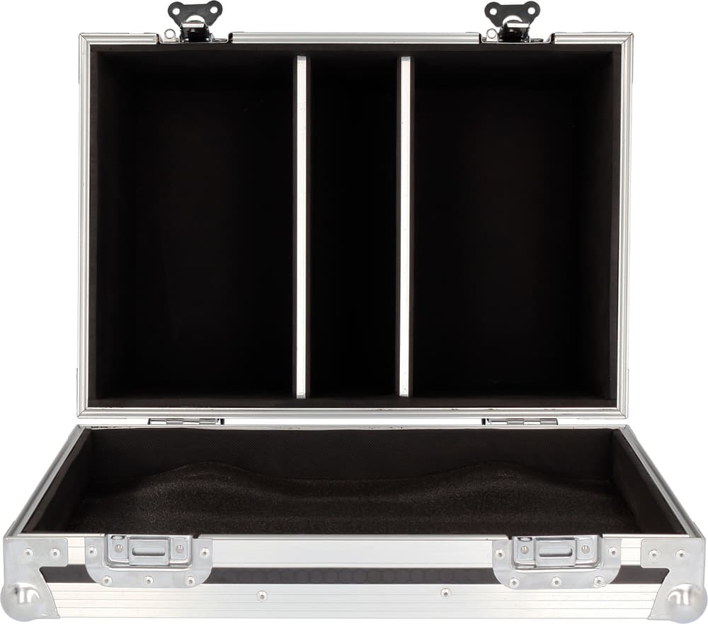 El flight case Algam BLINDER400-FC2 ha sido concebido para transportar y proteger dos unidades del Blinder 400 CW WWA de Algam Lighting. Su construcción en madera multilámina de alta resistencia y su interior forrado con espuma de alta densidad garantizan máxima protección frente a golpes y vibraciones. Equipa cuatro ruedas giratorias (dos con freno) para una movilidad ágil, dos asas laterales ergonómicas con el logo de Algam Lighting, esquinas esféricas reforzadas y cierres tipo mariposa que aseguran un cierre firme. Además, incluye un compartimento central para almacenar cables y accesorios de forma ordenada. Se entrega vacío; los Blinder 400 CW WWA se venden por separado.