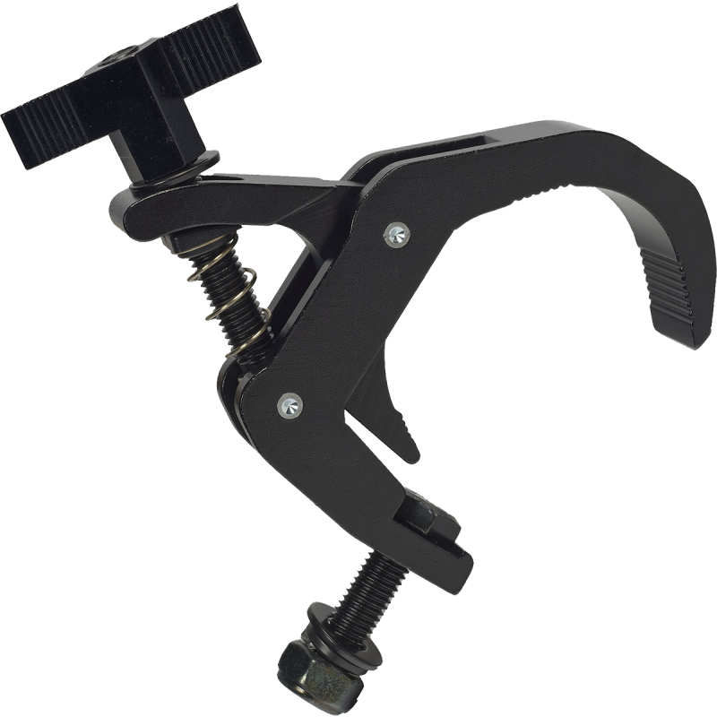 El pack Algam CR-UNIVERSAL-HEX incluye 24 ganchos universales de color negro, diseñados para una sujeción rápida y segura de elementos en estructuras tubulares de Ø42–60 mm. Fabricadas en aluminio de alta resistencia y certificadas por TÜV Rheinland, estas abrazaderas ofrecen una capacidad de carga de hasta 100 kg por unidad. Su diseño con tuerca hexagonal permite un apriete firme y duradero, facilitando el montaje y desmontaje en entornos profesionales de iluminación, sonido y escenografía.