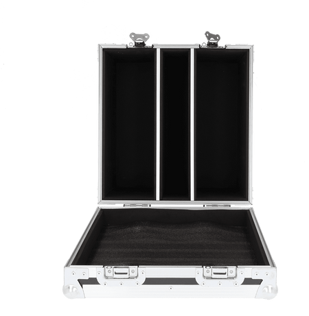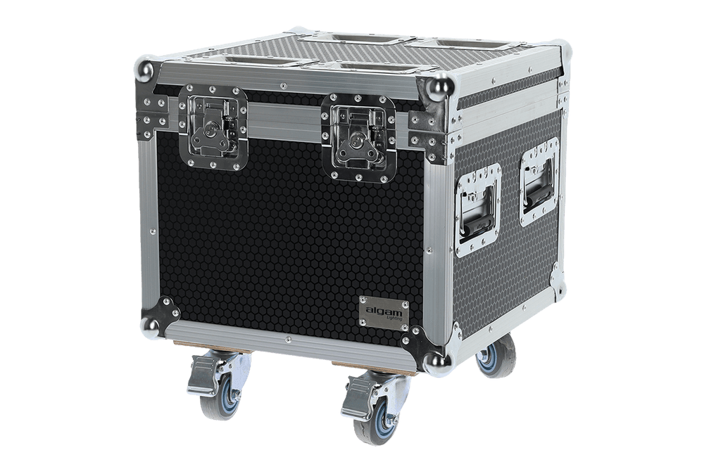El flight case Algam FL600V-IP-FC2 está diseñado para proteger y transportar dos unidades del proyector Algam Lighting FL600V-IP. Su construcción en madera multilámina reforzada y forro interior de espuma de alta densidad garantiza una protección antichoque de nivel profesional. Equipa cuatro ruedas giratorias (dos con freno) para una movilidad fluida, dos asas laterales empotradas con el logotipo de Algam Lighting, esquinas metálicas tipo bola con refuerzos y cierres tipo mariposa que aseguran un cierre firme. El compartimento central adicional permite guardar cables y accesorios con orden y rapidez.