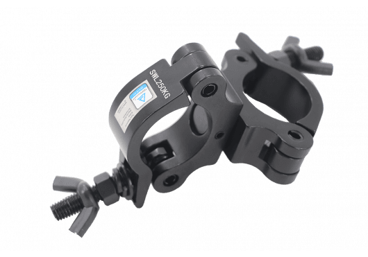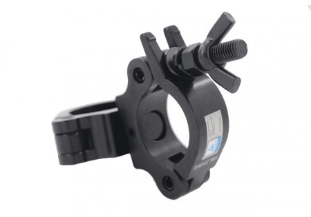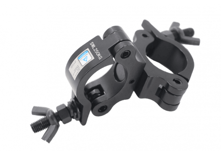 El acoplador Algam SCB-4252-250KG es un elemento de rigging profesional diseñado para unir de forma segura tubos y trusses de diámetros comprendidos entre 42 y 52 mm. Fabricado en acero forjado de alta resistencia con acabado negro texturizado, este clamp ofrece una capacidad de carga certificada de 250 kg, garantizando un anclaje firme y duradero en instalaciones de iluminación, sonido y estructuras escénicas.