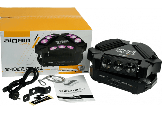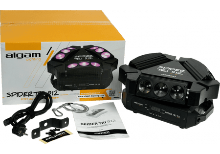 El SPIDER-TRI-912 de Algam Lighting es un innovador sistema de iluminación tipo “spider” que integra tres mini barras motorizadas en configuración triangular, cada una con 3 LEDs RGBW de 12 W. Gracias a su base giratoria de 360 ° y sus modos de funcionamiento versátiles, ofrece efectos beam dinámicos y barridos envolventes, ideales tanto para usuarios principiantes como para montajes profesionales.