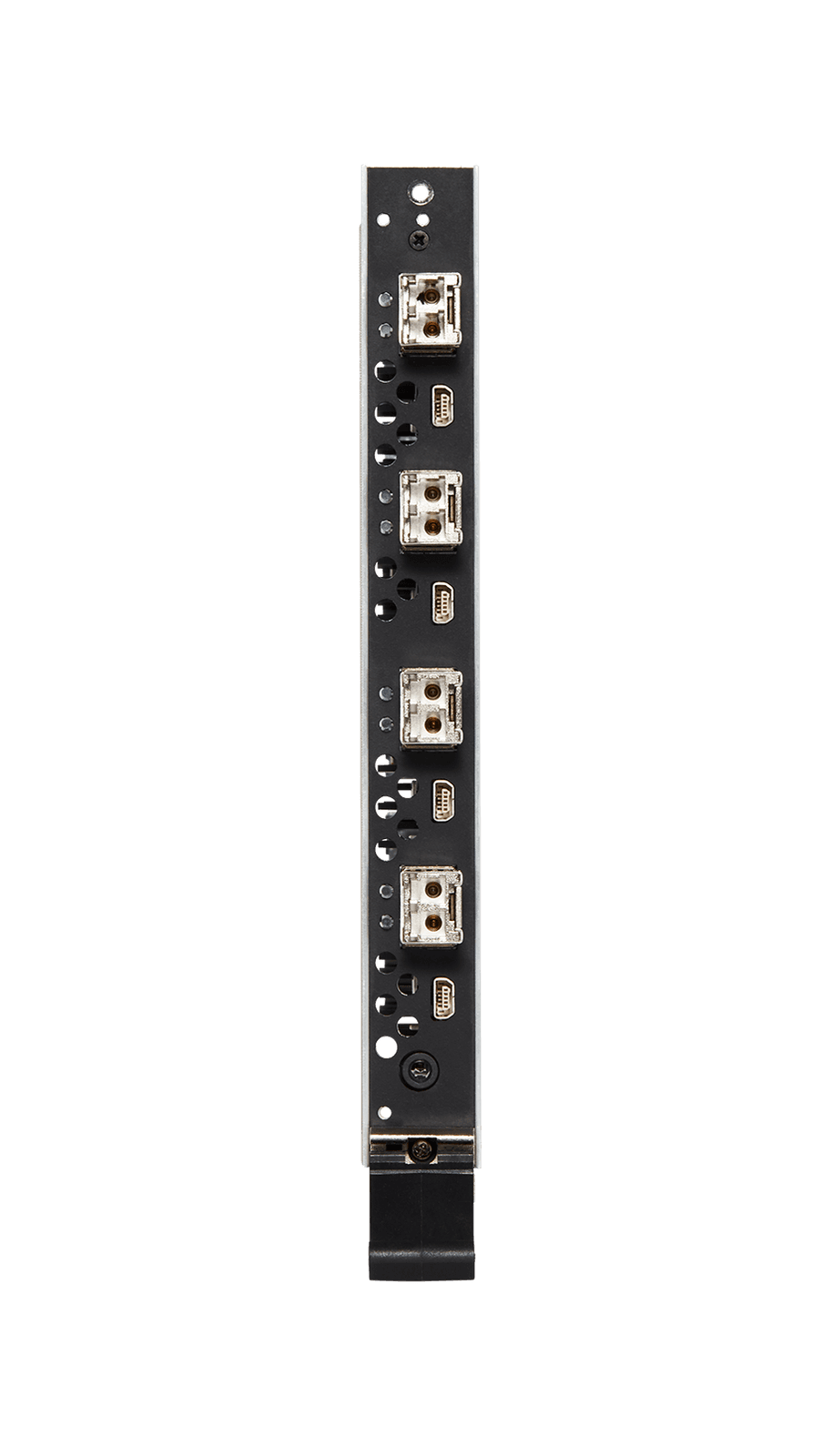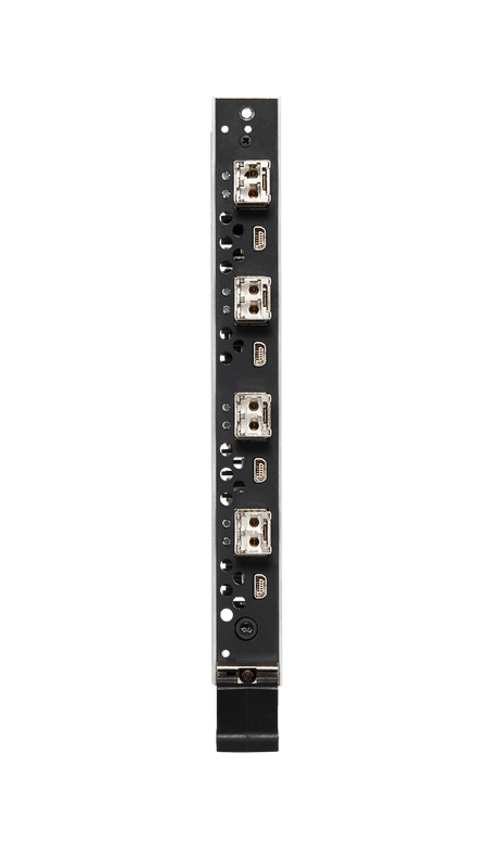 Tarjeta de entrada para chasis modular AMX Enova DGX. Proporciona una entrada de fibra óptica DXLink 4K60. Soporta resoluciones de vídeo de hasta 4096x2160 a 60Hz con muestreo de croma 4:4:4 y una profundidad de color de 36 bits. Compatible con los estándares HDMI 2.0, HDCP 2.2 y High Dynamic Range (HDR). Permite la transmisión de vídeo, audio, control y USB 2.0 a través de un único cable de fibra. Incorpora un conector para un módulo SFP+ LC Dúplex, incluyendo de serie un transceptor multimodo. La tarjeta es de diseño intercambiable en caliente (hot-swappable).