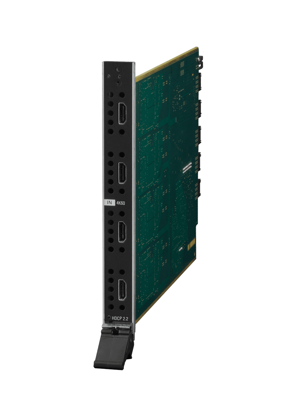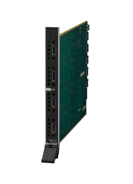 Tarjeta de entrada con cuatro puertos para sistemas de matriz modular Enova DGX. Soporta resoluciones de vídeo de hasta 4096x2160 a 60 Hz con submuestreo de croma 4:4:4 y un ancho de banda de 18 Gbps. Compatible con HDMI 2.0, HDCP 2.2, HDR10 y Deep Color de hasta 36 bits. Las entradas aceptan señales HDMI, DisplayPort++ o DVI. Admite paso de audio multicanal, incluyendo Dolby Atmos y DTS-HD Master Audio. Funcionalidad de intercambio en caliente (hot-swap) para mantenimiento sin interrupciones. Cada puerto es de tipo HDMI Tipo A hembra.