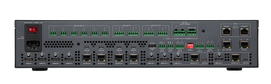 - Conectividad Extendida DXLink: Cuatro entradas y dos salidas DXLink 4K60 permiten transmitir y recibir audio, vídeo, control, Ethernet y USB 2.0 a través de un único cable de par trenzado hasta 100 metros de distancia.