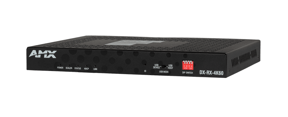 El AMX DX-RX-4K60 es un receptor de transporte a distancia de alto rendimiento, diseñado para recibir señales de audio, vídeo, control, Ethernet y USB 2.0 a través de un único cable de par trenzado blindado. Este módulo es la solución profesional definitiva para instalaciones que requieren la máxima calidad de imagen y una fiabilidad robusta, permitiendo extender señales HDMI 2.0 hasta 100 metros sin ninguna degradación. Es el complemento perfecto para transmisores AMX compatibles, como el Módulo Transmisor DXLink 4K60 o las placas de salida de las matrices Enova DGX.