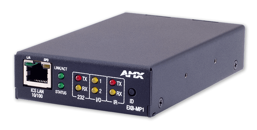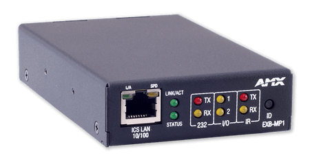 El AMX EXB-MP1 es una caja de control de dispositivos ICSLan diseñada para expandir y flexibilizar cualquier sistema de automatización AMX NetLinx. Este dispositivo compacto y potente permite añadir puertos de control en cualquier punto de una red Ethernet, solucionando los desafíos de distancia y capacidad de los controladores centrales. Es la solución ideal para gestionar dispositivos de forma remota, permitiendo que un único controlador NetLinx pueda gestionar equipos en varias salas o en ubicaciones lejanas, optimizando los recursos y simplificando la infraestructura de control.