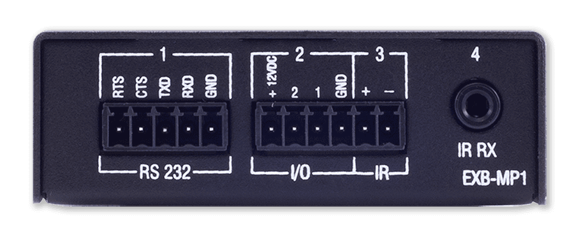 • Puerto Receptor IR: 1 x Puerto para receptor de infrarrojos (IR RX) con conector Phoenix de 3 pines