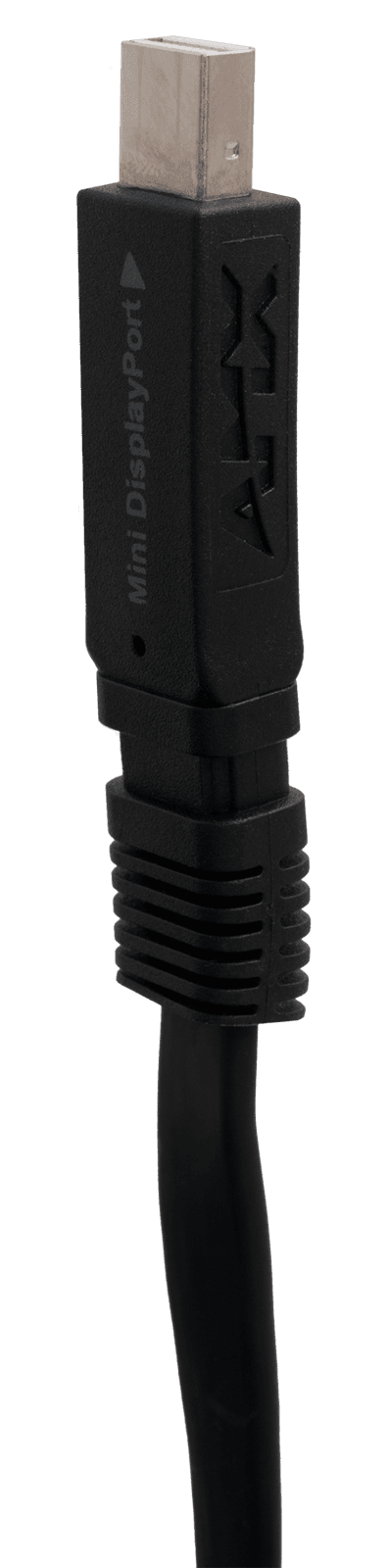 El cable trasero (pigtail), que también mide 1,52 metros, termina en un conector DisplayPort. Sin embargo, el producto incluye un adaptador pasivo de DisplayPort a HDMI para conectarlo directamente a una entrada HDMI del sistema de la sala.