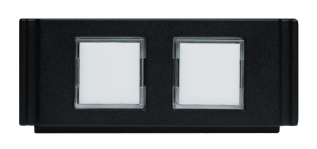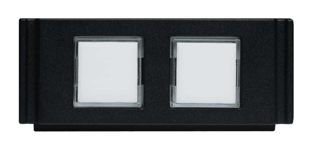 Módulo de control para sistema modular AMX HydraPort. Consta de dos botones pulsadores con retroiluminación LED integrada para indicar el estado activo. Está diseñado para la conmutación de fuentes y dispositivos en sistemas audiovisuales. Ocupa 1 unidad de espacio (1U) en el chasis HydraPort. Fabricado en plástico de alta resistencia con acabado en color negro. Es compatible con inserciones de botones de colores opcionales (modelo FG554-08) para una mejor identificación de las funciones.