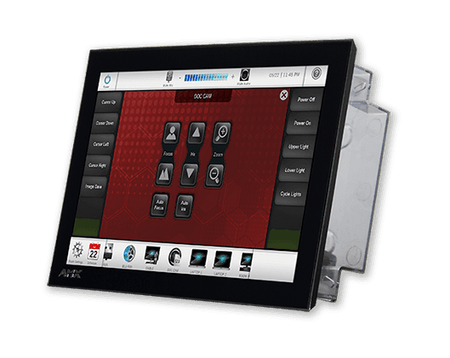 Panel táctil de control para montaje en pared con pantalla de 10,1 pulgadas y formato panorámico 16:9. Dispone de una pantalla LCD TFT de matriz activa con retroiluminación LED, resolución de 1280x800 píxeles y tecnología de conmutación en plano (IPS) con ángulos de visión de ±89°. La superficie táctil es capacitiva proyectada con soporte multitáctil. Internamente, está equipado con un procesador Quad-Core, 2 GB de memoria SDRAM y 16 GB de almacenamiento Flash. La conectividad incluye un puerto Ethernet 10/100 con PoE (802.3af) y un puerto USB 2.0. Integra micrófono FET y altavoces de 2 W. Es compatible con los protocolos de comunicación UCP, TCP, ICSP, HTTP y SIP v2.0. Permite la visualización de documentos PDF, Microsoft Office e imágenes.