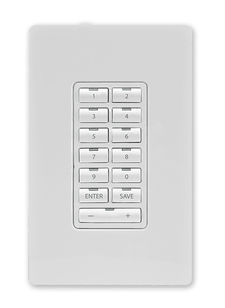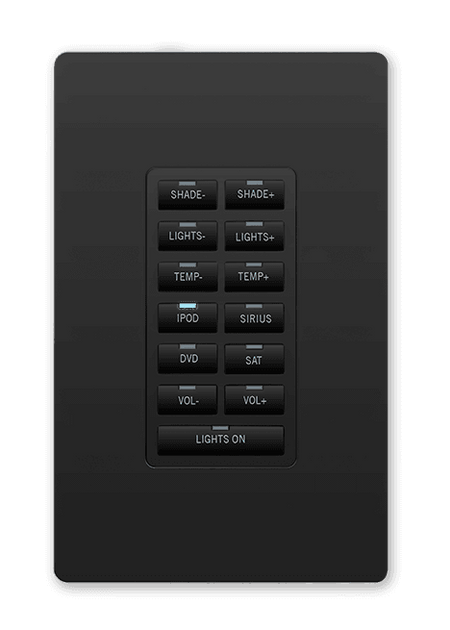 Teclado de control con 13 botones (12 de ancho simple y 1 de ancho doble configurable como uno o dos botones). Conexión a controlador mediante puerto Ethernet 10/100 RJ-45. Alimentación a través de Ethernet (PoE) 802.3af clase 0. Admite la conexión en cadena de hasta dos teclados de expansión adicionales compartiendo una dirección IP. Indicadores LED de estado programables de color azul en cada botón. Diseñado para montaje en placas de pared estándar tipo Decora.