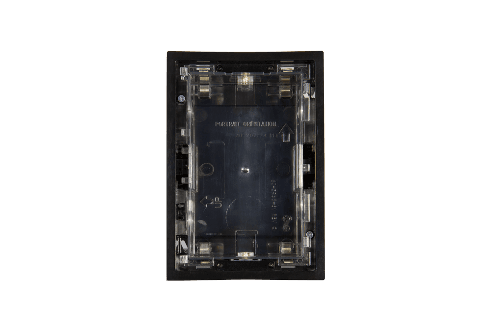 Ideal para entornos donde el diseño es prioritario, este accesorio asegura que la tecnología de control de AMX esté presente pero no sea intrusiva. Su compatibilidad abarca tanto modelos en orientación horizontal (Landscape) como vertical (Portrait), ofreciendo flexibilidad total a integradores y arquitectos. El sistema de fijación mediante pestañas de bloqueo facilita una instalación firme en paredes de yeso y superficies sólidas estándar, garantizando durabilidad y estabilidad a largo plazo.