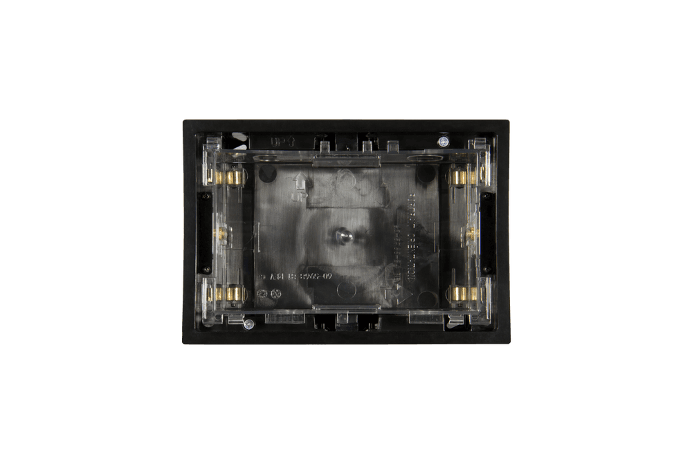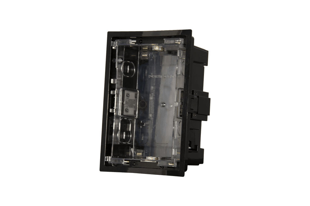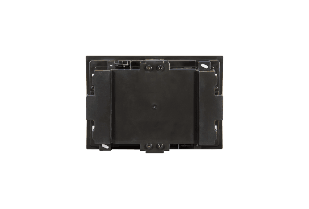 Kit de montaje empotrado en pared para paneles táctiles de la serie Modero X de 7 pulgadas. Permite la instalación del dispositivo totalmente a ras de la superficie arquitectónica (Flush Mount). Incorpora mecanismo mecánico de resorte activado por presión para la extracción parcial del panel, permitiendo el acceso a botones laterales de servicio y rejillas de audio. Compatible con instalación en orientaciones horizontal y vertical. Sistema de fijación mediante pestañas de bloqueo para superficies con grosor de 1.27 cm a 2.22 cm. Dimensiones externas del marco: 13.97 cm x 20.33 cm x 8.85 cm. Peso aproximado: 0.45 kg.
