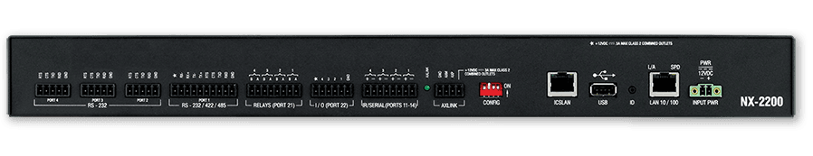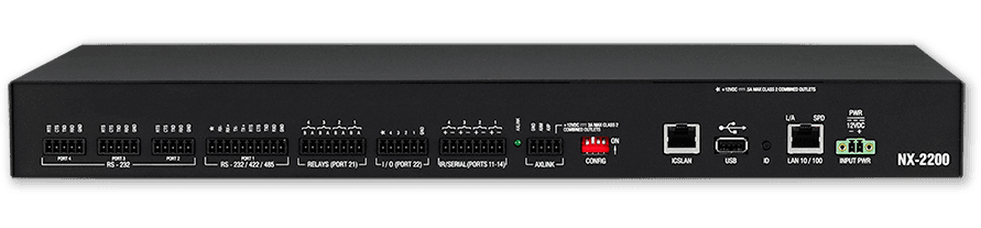 La fiabilidad es el núcleo de este controlador. Diseñado para operar 24/7/365, el NX-2200 es la solución perfecta para entornos de misión crítica donde el tiempo de inactividad no es una opción. Con una amplia variedad de puertos de control (Serie, IR, E/S, Relés y AxLink) y una capacidad de memoria superior a su predecesor (el NX-1200), este equipo proporciona la flexibilidad necesaria para integrar desde pantallas y proyectores hasta sistemas de iluminación, climatización y seguridad en una interfaz de usuario coherente y sencilla.