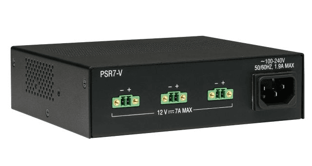 Pensada para alimentar dispositivos de alto consumo como los paneles táctiles Modero X Series y controladores centrales NetLinx NX, la PSR7-V garantiza un rendimiento continuo sin interrupciones. Su arquitectura interna está diseñada para minimizar el ruido eléctrico y la ondulación (ripple), asegurando que las señales de control y comunicación permanezcan limpias y libres de interferencias, un factor crucial en entornos corporativos y de automatización.
