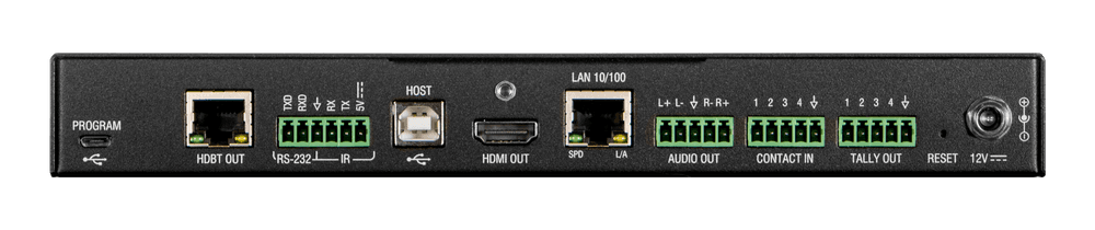 - Salida HDBaseT Reflejada: Facilita la instalación en salas grandes al permitir una conexión directa a receptores HDBaseT o pantallas compatibles a larga distancia, enviando vídeo y recibiendo datos simultáneamente.