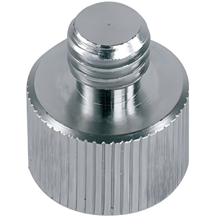 Adaptador de rosca reductor metálico PROEL AP122 diseñado para la conversión de estándares de montaje en equipamiento de audio profesional. El dispositivo permite la adaptación mecánica de accesorios con rosca hembra de 5/8 de pulgada para su fijación en soportes con rosca macho de 3/8 de pulgada. Fabricado íntegramente en metal mecanizado con acabado resistente a la corrosión. Incluye ranuras transversales en el extremo para facilitar el par de apriete y desbloqueo mediante herramienta plana. Compatible con la normativa estándar de roscas para soportes de micrófono y accesorios de sonorización.