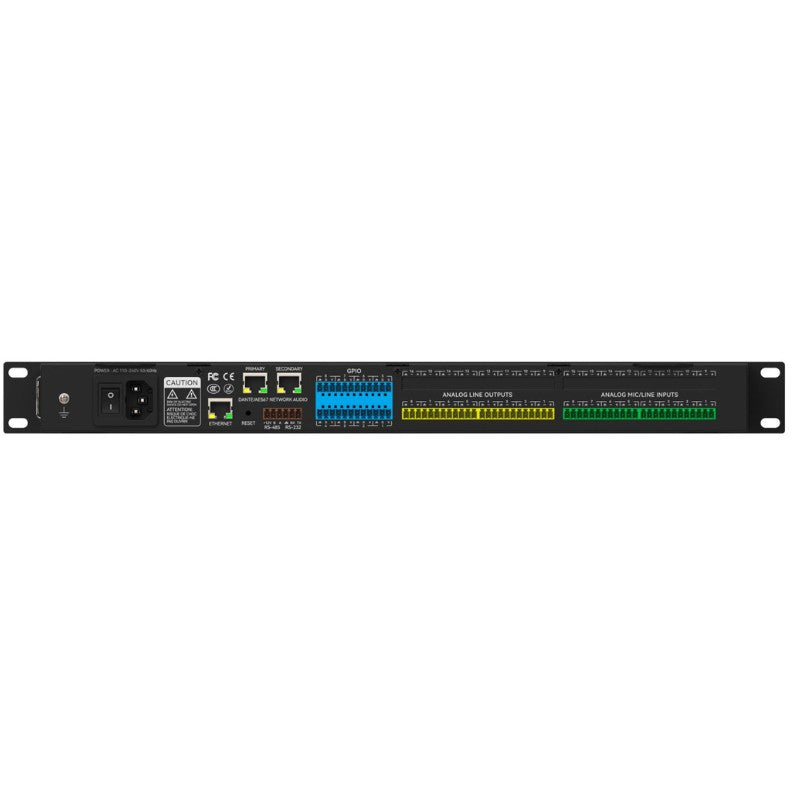 - Dos mundos en uno: combina I/O analógica y networked audio Dante, simplificando racks y reduciendo equipos externos.