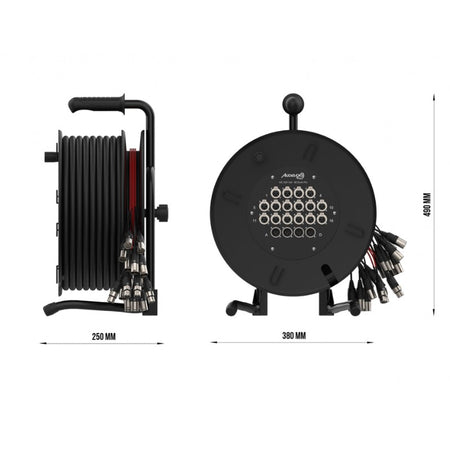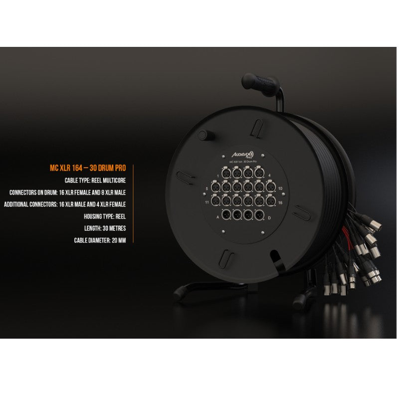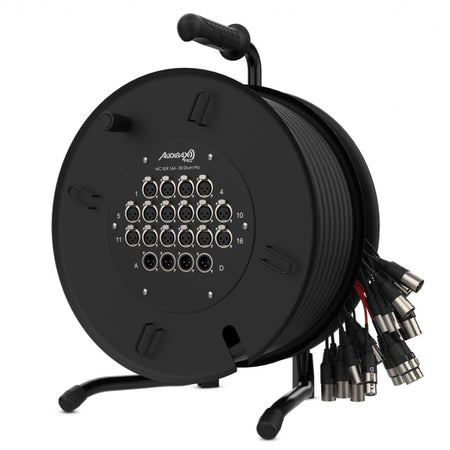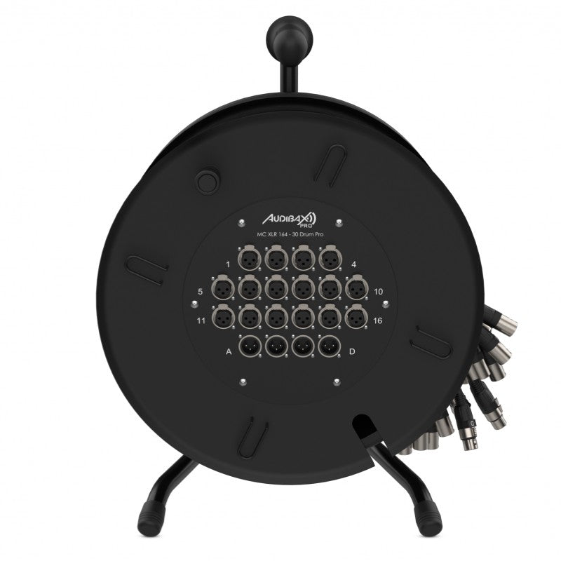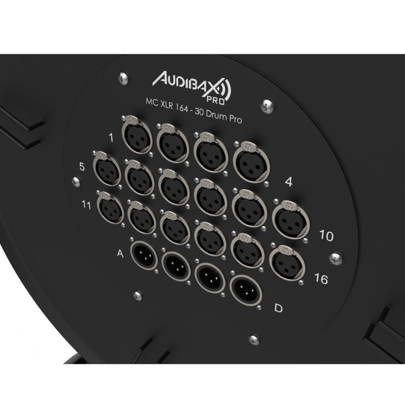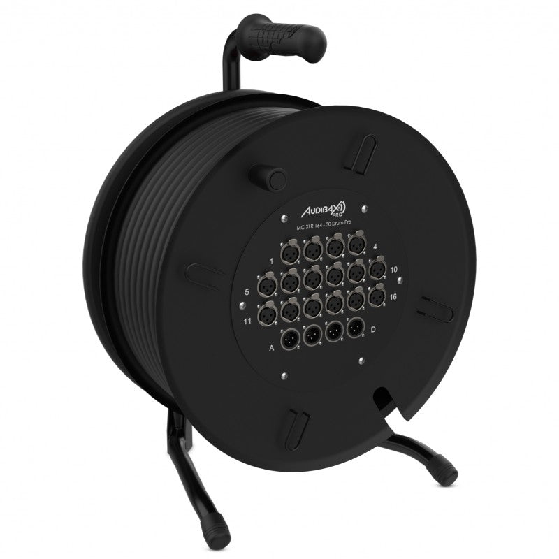 Audibax Pro MC XLR 164-30 Drum Pro - Reel multicore de 30 m con carrete, 16 entradas XLR y fan-out 16M+4H