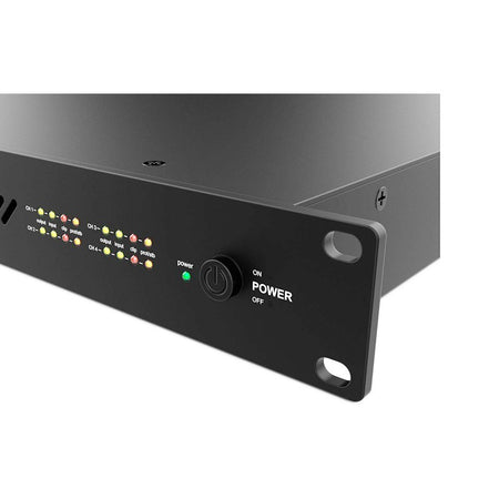 • 4 canales independientes en chasis compacto 1U/19″ para instalaciones multizona.