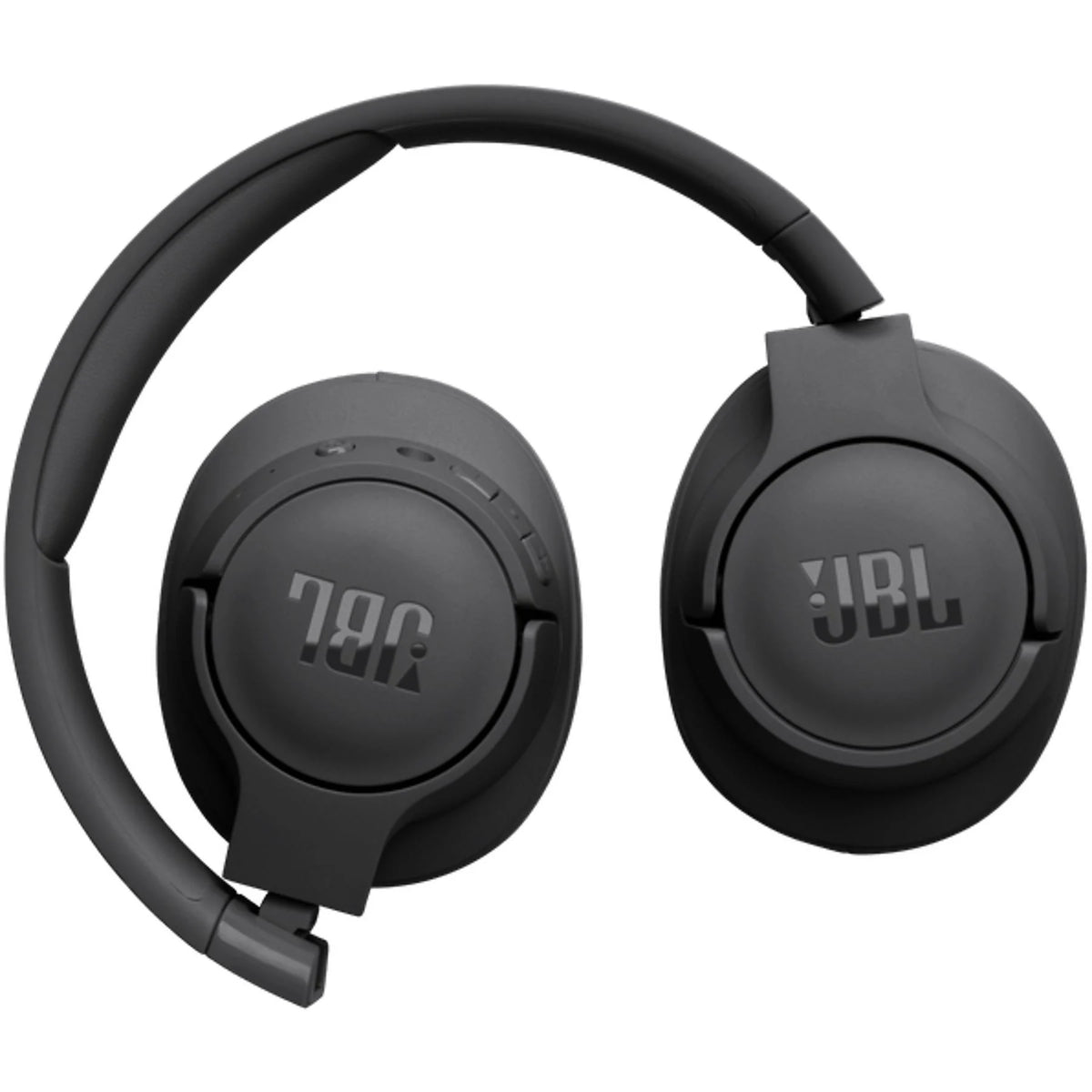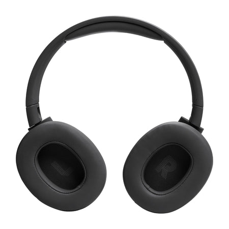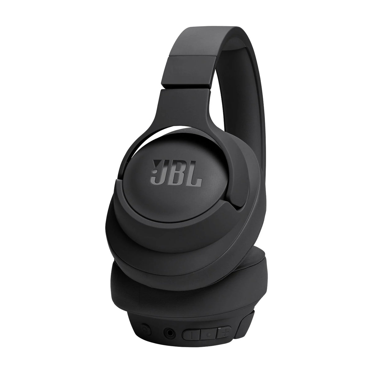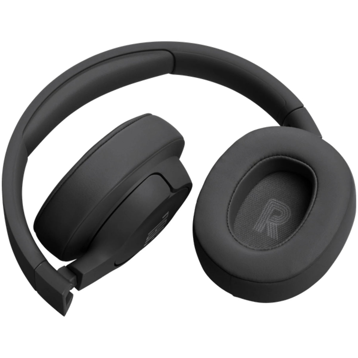 Auriculares inalámbricos circumaurales JBL Tune 720BT en color negro, con conectividad Bluetooth 5.3 y función multipunto (hasta 2 dispositivos). Transductores dinámicos de 40 mm, respuesta en frecuencia 20 Hz – 20 kHz, impedancia 32 Ω, sensibilidad 101 dB SPL (1 kHz, 1 mW) y nivel máximo de presión sonora 95 dB. Micrófono integrado con sensibilidad –40 dBV/Pa (1 kHz). Batería de ion litio 3,7 V / 500 mAh, autonomía de reproducción con Bluetooth de hasta 76 h y tiempo de carga aproximado de 2 h mediante USB-C, con carga rápida (5 minutos ≈ 3 h de uso). Peso aproximado 220 g. Incluyen cable de carga USB-C, cable de audio extraíble de 1,2 m, documentación y guía de inicio rápido.