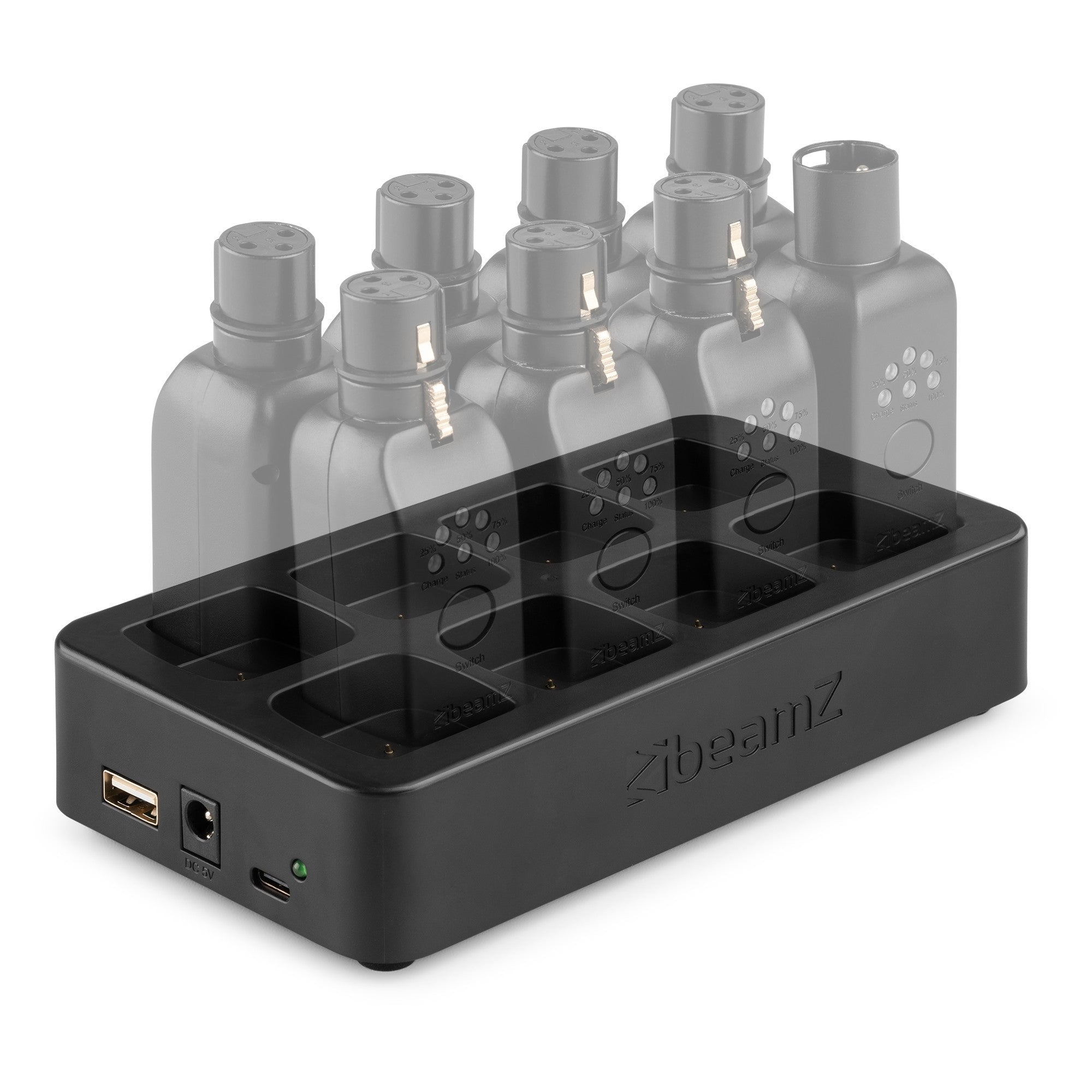 - Capacidad de carga masiva: Diseñada para alojar y cargar hasta 8 unidades de dongles BeamZ WD1 (transmisores y receptores) al mismo tiempo.