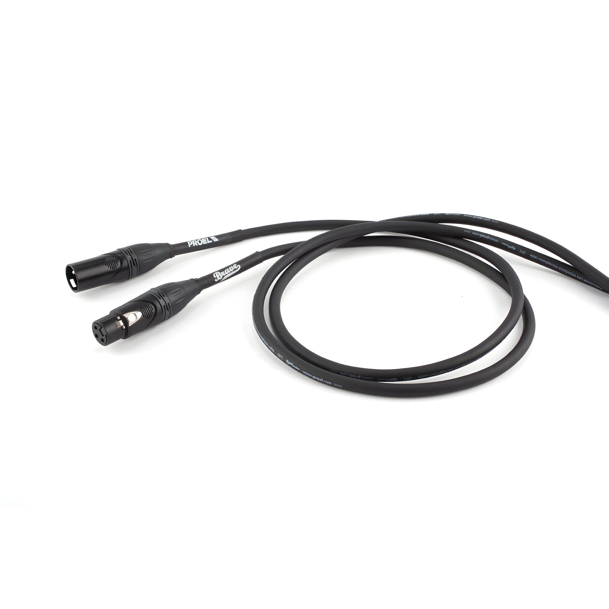 • Conectores Profesionales: Equipado con conectores Proel XLR de 3 pines (Macho a Hembra) de alta resistencia, diseñados para soportar ciclos continuos de conexión y desconexión.