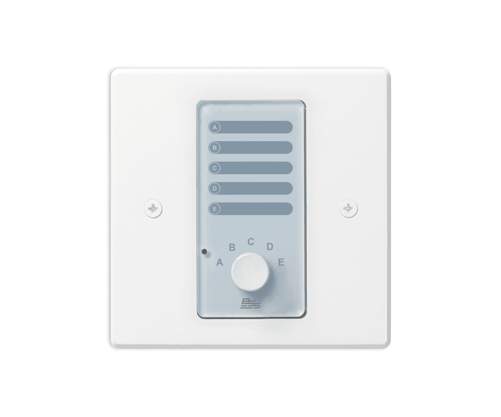 El BSS AC-5S es un controlador mural analógico de la familia Soundweb Contrio, pensado para dotar a cada zona de un selector de fuente de 5 posiciones fácil de usar y altamente fiable. Diseñado para integrarse directamente con los procesadores BSS Soundweb London, se conecta a sus entradas GPI (Control Inputs) y se configura en minutos mediante HiQnet Audio Architect o London Architect con operaciones de arrastrar y soltar. Esta versión en color negro está disponible en formato single-gang para US Decora y para EU, integrándose de forma discreta y profesional en instalaciones corporativas, educativas, de hostelería y retail.