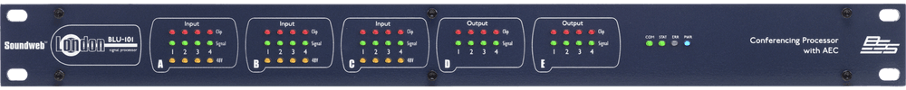 El BSS BLU-101 es un procesador de señal para conferencias de la plataforma Soundweb London que integra 12 entradas analógicas y 8 salidas analógicas, AEC dedicado para hasta 12 canales y conexión en red mediante BLU link (48 canales). Su arquitectura abierta se diseña en HiQnet Audio Architect con flujo de trabajo por arrastrar y soltar, disponiendo de una amplia paleta de bloques de audio y lógica. BLU link proporciona un transporte multicanal, de baja latencia y tolerante a fallos sobre cable Cat 5e, con 100 m entre dispositivos y posibilidad de extenderse mediante convertidores de medios a más de 40 km por fibra.