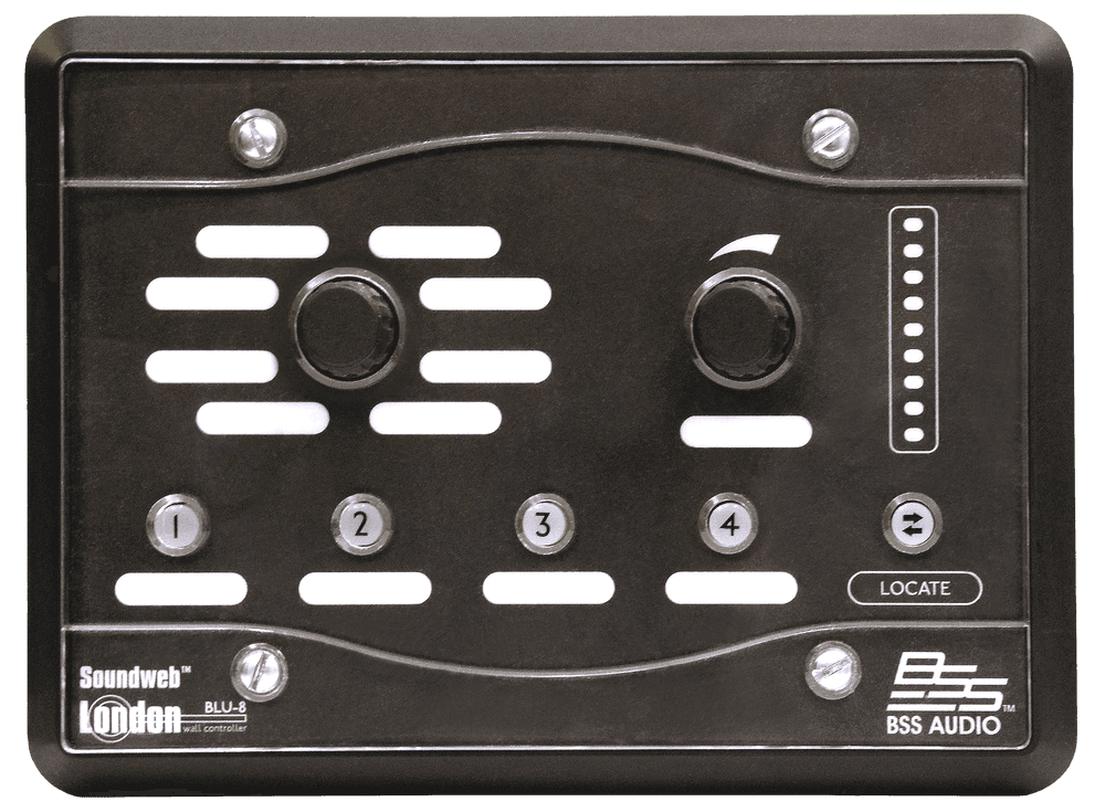 El BSS BLU-8v2BLK es un controlador de zona programable para la plataforma Soundweb London (ecosistema HiQnet) que permite gestionar 1, 4 u 8 zonas según el modo de operación seleccionado. Su interfaz combina dos encoders rotatorios, cinco botones y un medidor LED de 9 segmentos con retroiluminación RGB configurable, ofreciendo una experiencia clara para usuarios no técnicos y una integración rápida para el instalador. La versión BLK presenta acabado en negro y se empotra en caja mural US de 3 módulos (3-gang). Se alimenta por PoE (IEEE 802.3af) o corriente continua 14–48 V, y se configura con flujo de trabajo drag-and-drop en HiQnet London Architect / Audio Architect.