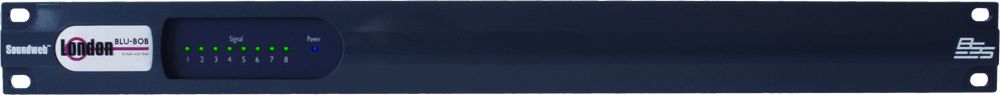 El BSS BLU-BOB2 es un expansor de salidas analógicas para la plataforma Soundweb London que añade 8 salidas de línea balanceadas a través del bus digital BLU link (256 canales, baja latencia y tolerante a fallos). Su configuración es extremadamente sencilla: mediante 6 interruptores DIP selecciona cualquier bloque consecutivo de 8 canales entre los disponibles en el anillo BLU link, sin necesidad de software. El chasis 19”/1U integra indicadores LED de presencia de señal por salida y de alimentación, y utiliza los mismos conectores de bloque (Phoenix/Combicon) que el resto de la familia Soundweb London.
