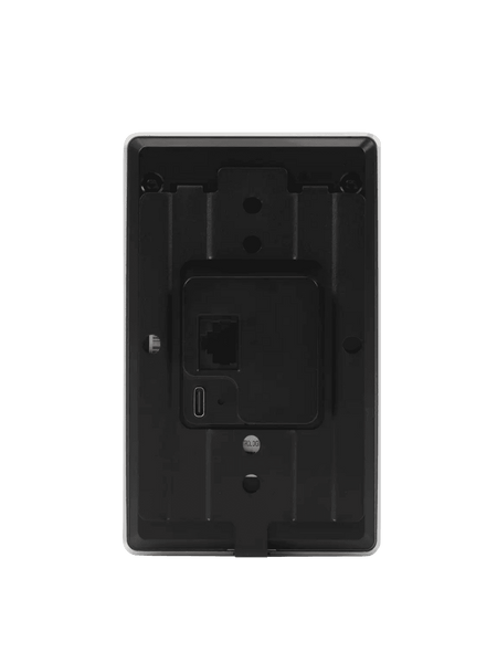 Físicamente, el dispositivo destaca por su versatilidad de instalación. Su diseño de chasis es compatible globalmente con la mayoría de las cajas de empotrar eléctricas tipo single-gang (estándar universal de un solo mecanismo), lo que facilita su despliegue tanto en obras nuevas como en remodelaciones en diferentes regiones geográficas. Además, su conectividad se resuelve mediante un único cable de red gracias a la tecnología PoE (Power over Ethernet), que transporta tanto los datos de control como la alimentación eléctrica, eliminando la necesidad de fuentes de alimentación externas o cableado eléctrico adicional en la pared.