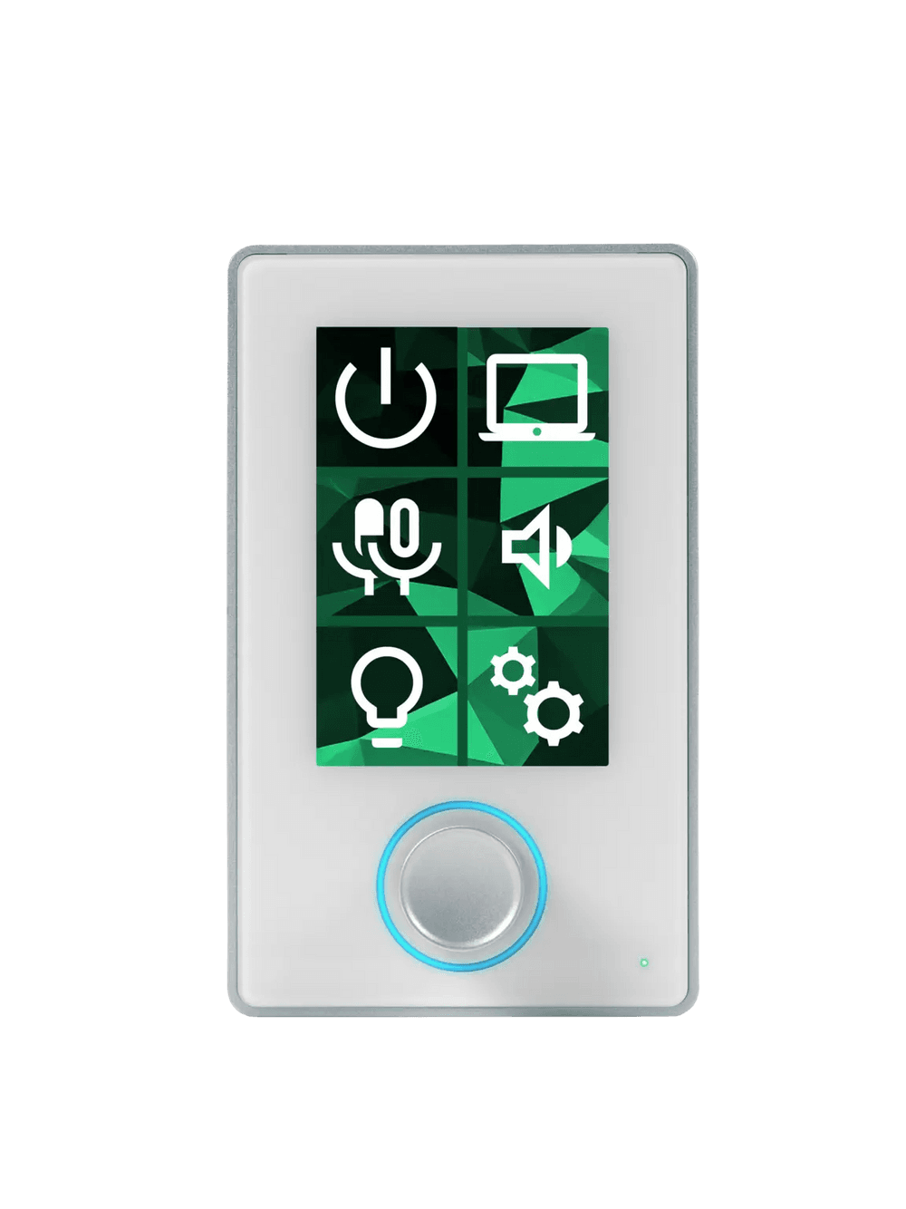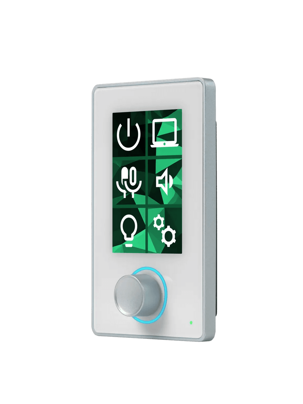 - Salas de Conferencias Corporativas: Control de volumen general, selección de escenas de iluminación y gestión de llamadas con feedback visual del estado del micrófono.