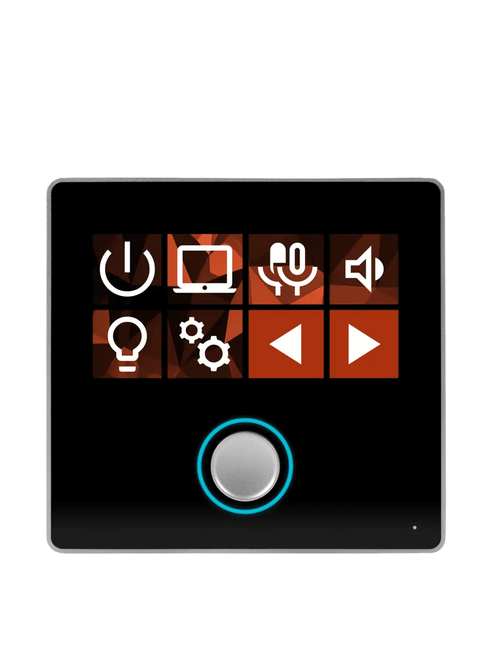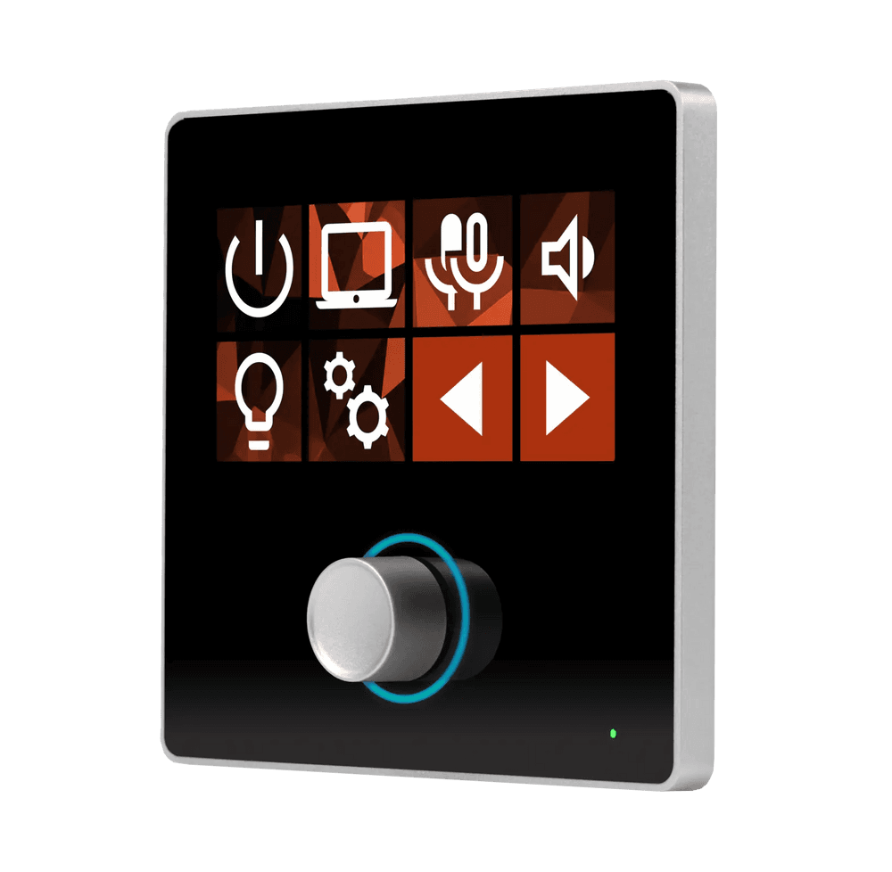 Para el usuario final, el beneficio es la claridad absoluta. En lugar de pulsar un botón genérico y esperar que ocurra lo correcto, las pantallas LCD le muestran exactamente qué hace cada función (ej. el icono de un micrófono, un proyector o un escenario). La combinación de navegación por páginas y el control rotativo hace que gestionar sistemas complejos sea tan fácil como usar el salpicadero de un coche moderno.
