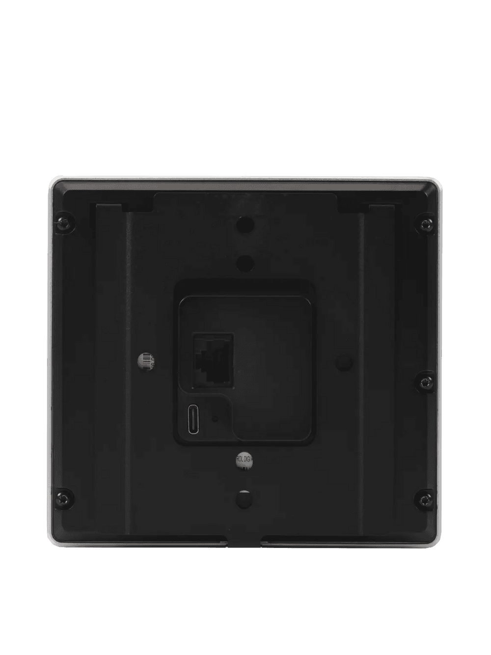 Pensado para el instalador moderno, el hardware se ha optimizado para un despliegue sin fricciones. Su chasis es compatible con cajas eléctricas estándar de una unidad (single-gang) a nivel mundial, facilitando su montaje en cualquier pared o superficie arquitectónica. Además, la alimentación y los datos se transmiten a través de un único cable de red mediante tecnología PoE (Power over Ethernet), simplificando drásticamente la infraestructura de cableado necesaria.