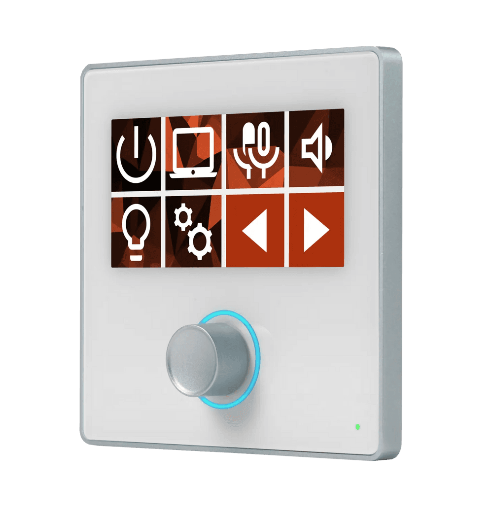 - Educación: Paneles de control en aulas para encender proyectores, bajar pantallas y ajustar el audio del micrófono del profesor.