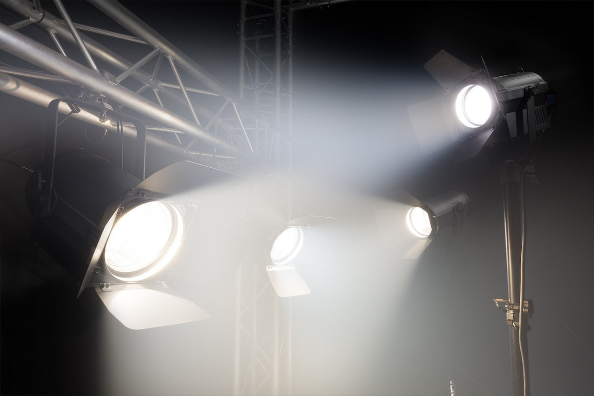 - Teatros y salas escénicas: Perfecto como Fresnel principal para iluminación de actores, zonas de escenario, cicloramas y decorados con blanco cálido teatral.