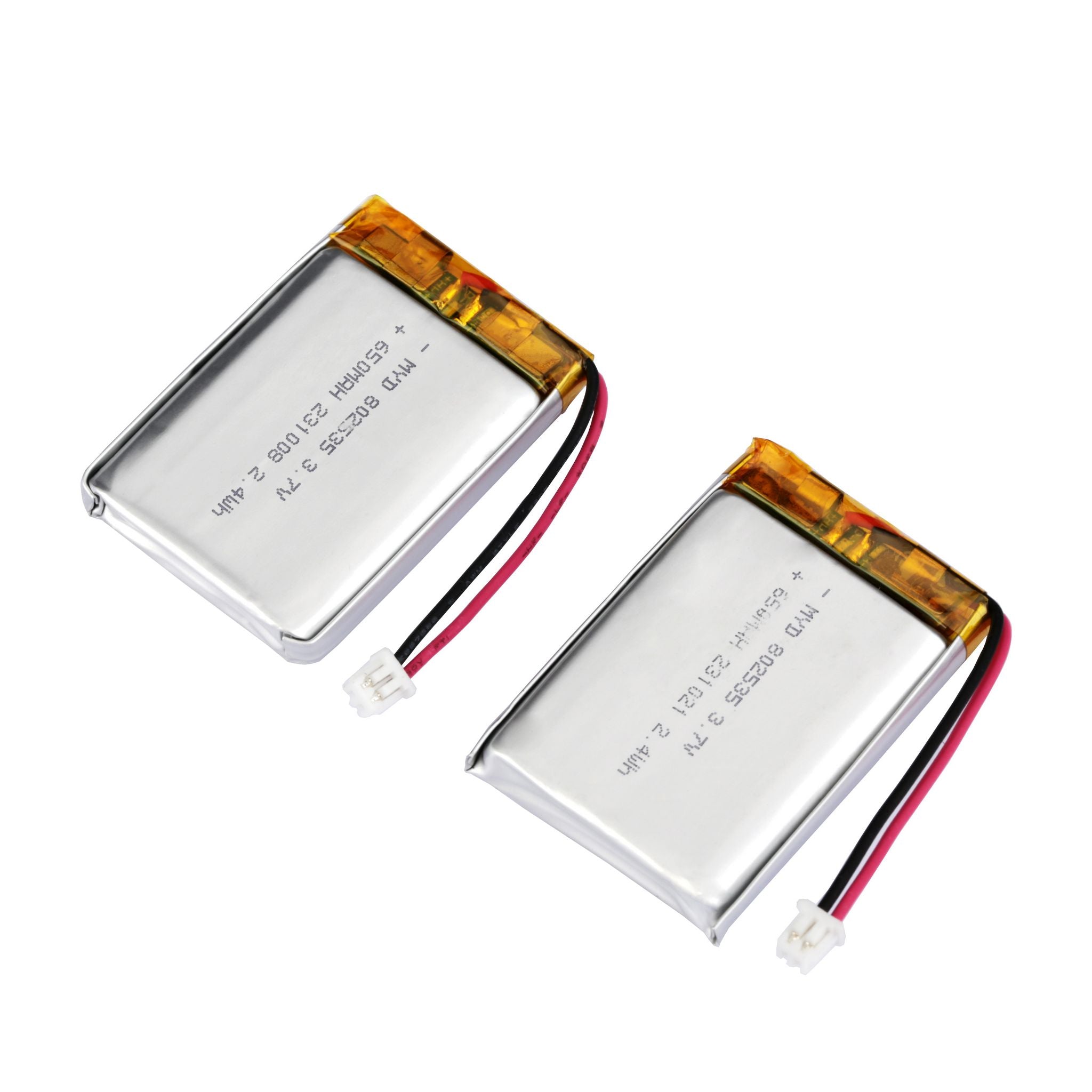 Kit de recambio BU2 para XVIVE U2: 2× baterías Li-Po 650 mAh/3,7 V/2,4 Wh, destornillador, 2× capuchones, 2× cintas de doble cara, circuito de carga seguro e instrucciones. Permite restaurar autonomía de transmisor y receptor y prolongar la vida útil del sistema.