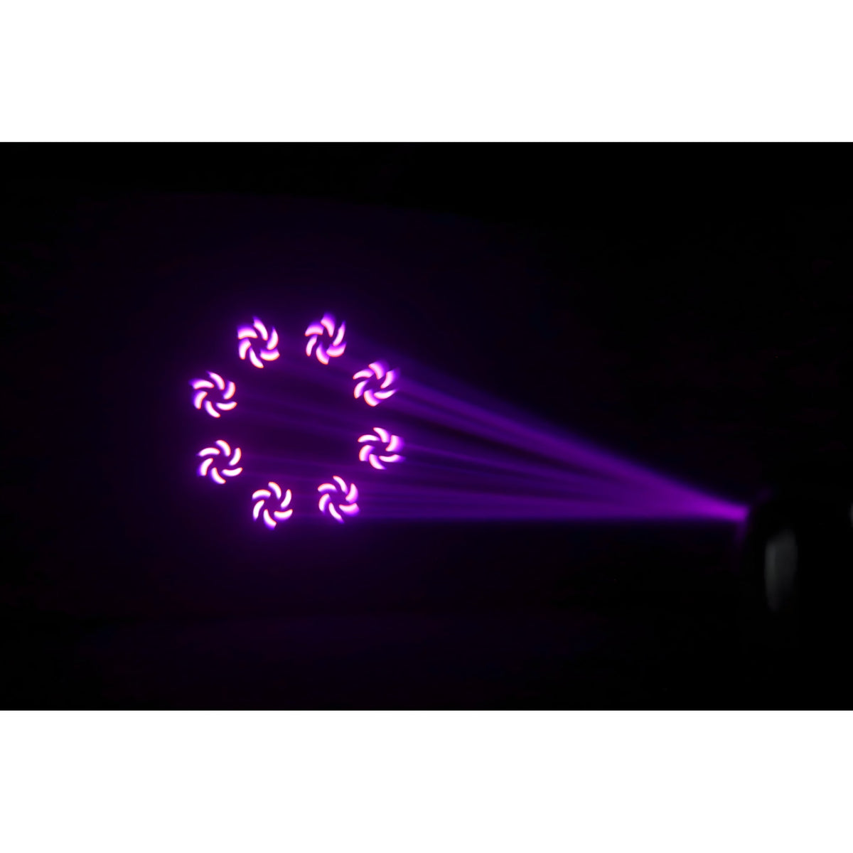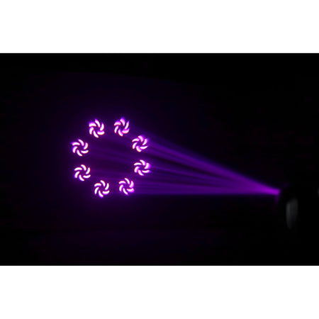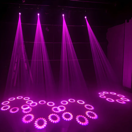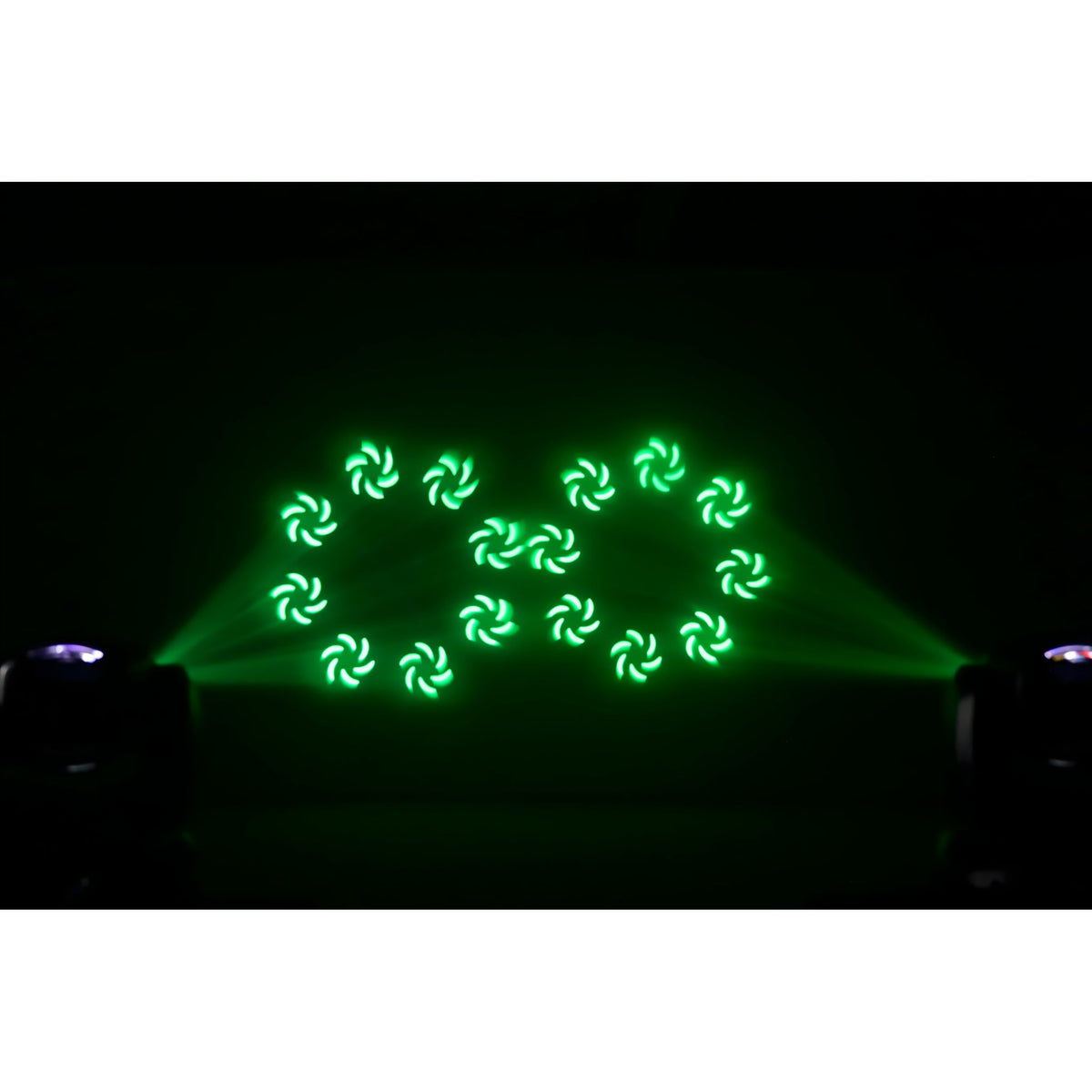 - Gobos: Rueda de ocho gobos estáticos + shaker + rotación continua.
