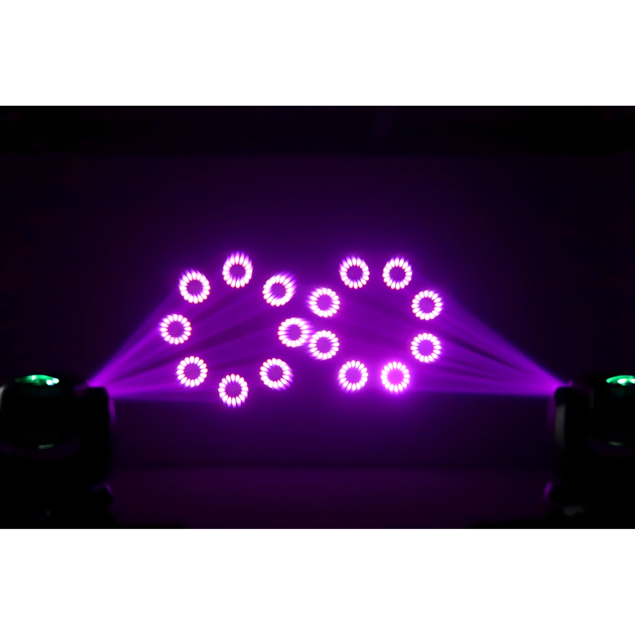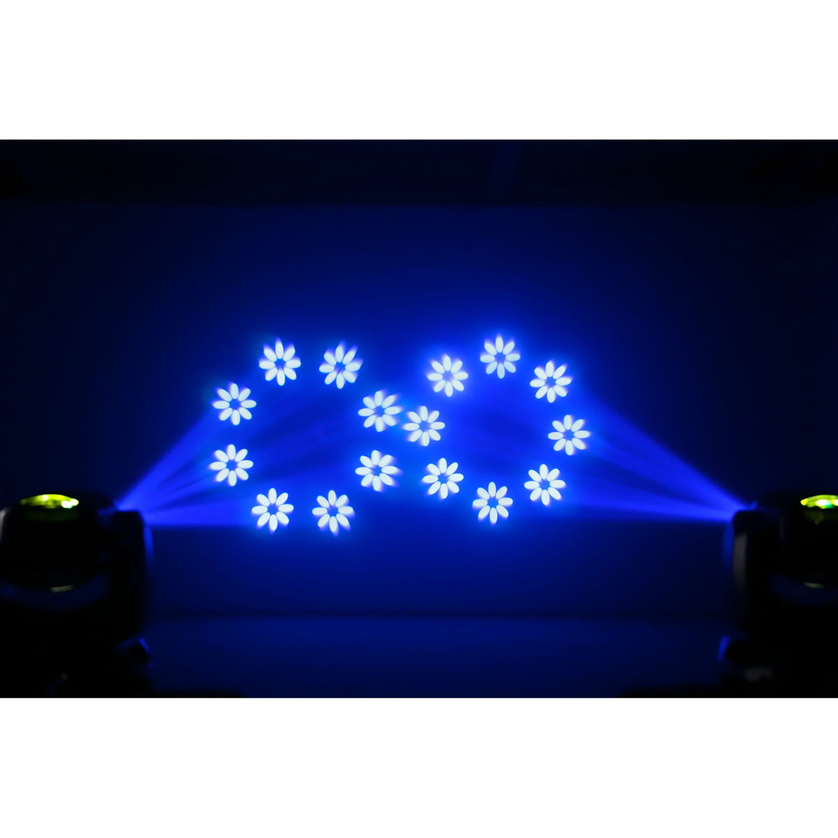 La cabeza móvil TEMPO Mini Beam 120 combina un potente LED blanco de 120 W con un prisma rotativo de ocho caras, ofreciendo haces concentrados y efectos prismáticos dinámicos. Su rueda de ocho colores, efecto de medio color y rotación infinita posibilitan transiciones cromáticas suaves y espectaculares. Además, la rueda de ocho gobos, acompañada de función shaker y giro continuo, permite proyectar formas variadas sin necesidad de accesorios adicionales.
