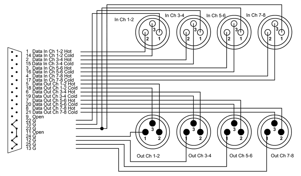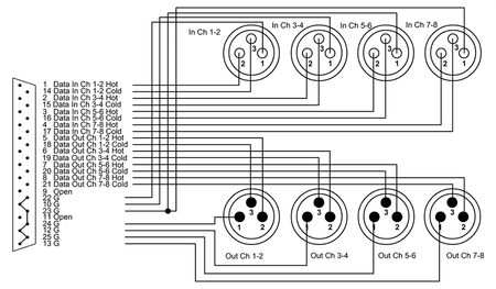 - Conexión versátil: Enlace de D-Sub 25 pines a 4 conectores XLR macho y 4 XLR hembra.