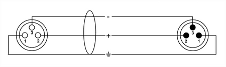 Cable de audio balanceado de 50 cm de longitud, perteneciente a la serie Essentials de Cordial. Está ensamblado con un conector XLR hembra de 3 pines y un conector XLR macho de 3 pines, ambos de la marca REAN by Neutrik. El cable utilizado es el modelo CME 220, con una sección de conductor de 0.22 mm² (AWG 24) compuesta por 28 hilos de cobre de 0.10 mm cada uno. Incorpora un apantallamiento de hilo de cobre en espiral para una protección eficaz contra interferencias. La cubierta exterior es de PVC con un diámetro total de 6.0 mm. La capacitancia es de 100 pF/m y la resistencia del conductor es de 85 Ohm/km.