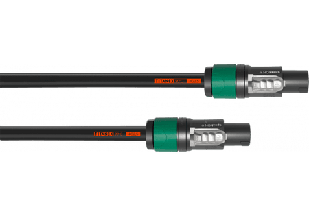 Cable de altavoz profesional de 2 metros de longitud. Fabricado con cable de manguera de goma pesada Titanex® H07RN-F, conforme a la norma EN 50525-2-21. Posee una sección de conductor de 4 x 2.5 mm² y está terminado en ambos extremos con conectores NEUTRIK® speakON® de 4 polos. El cable es resistente al aceite, libre de silicona, libre de halógenos y retardante de llamas según las normativas C2, NF C 32-070 e IEC 60332-1.