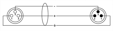 Cable de micrófono profesional balanceado de 2,5 metros de longitud. Está ensamblado con conectores XLR de 3 pines marca Neutrik, modelo NC3MXX (macho) y NC3FXX (hembra), con contactos de niquel. El cable utilizado es el Cordial CMK 234, con una sección de conductor de 2 x 0,34 mm² fabricado con cobre libre de oxígeno (OFC). Incorpora un blindaje en espiral de cobre y una cubierta exterior de PVC con un diámetro de 6.2 mm.