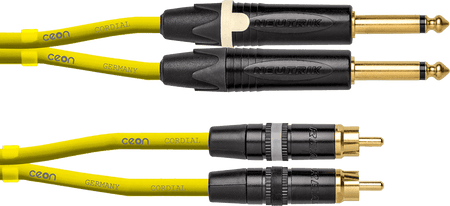 El Cordial ECLDJ-JKRCA3Y es un cable de conexión de audio diseñado específicamente para satisfacer las demandas de DJs, productores y entusiastas del sonido que buscan una solución fiable y de alta calidad. Con una longitud de 3 metros, este cable ofrece una excelente flexibilidad para conectar equipos en una cabina de DJ, un estudio casero o cualquier configuración de audio. Su llamativo color amarillo no solo aporta un toque estético, sino que también facilita su identificación en entornos con poca luz o con una gran cantidad de cables, permitiendo una organización visual clara y rápida.