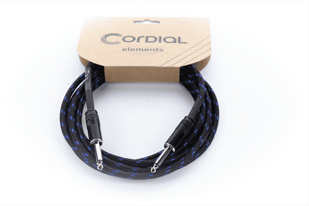 Cable de instrumento de 5 metros de longitud. Equipado con dos conectores jack TS de 6,3 mm macho mono no balanceados, con contactos niquelados. El conductor interno tiene una sección de 0,22 mm² y está fabricado en cobre libre de oxígeno con una construcción de 28 x 0,10 mm. Cuenta con un sistema de doble apantallamiento compuesto por un blindaje en espiral de cobre y una capa de plástico conductor. El diámetro exterior del cable es de 6,5 mm, con un revestimiento de PVC y una cubierta exterior textil trenzada en color tweed azul/negro.