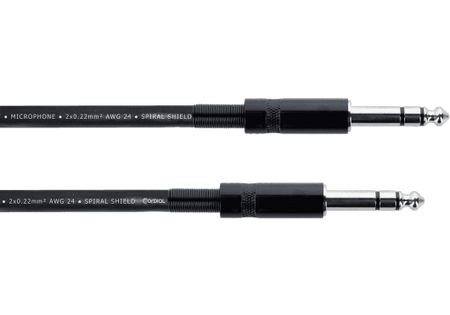Cable de audio profesional para transmisión de señal balanceada de 50 cm de longitud. Dispone de conectores jack TRS macho de 6.3 mm en ambos extremos. Los conectores son metálicos con contactos niquelados. La sección del conductor es de 2x 0.22 mm² y cuenta con un apantallamiento en espiral de cobre con un 95% de cobertura. El diámetro exterior del cable es de 6.0 mm y posee un revestimiento exterior de PVC flexible y robusto.
