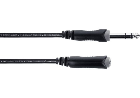 Este cable de extensión se distingue por su cuidada construcción y los materiales de alta calidad empleados. Está equipado con un conector jack estéreo macho de 3.5mm (TRS) en un extremo y un conector jack estéreo hembra de 3.5mm (TRS) en el otro, ambos fabricados por REAN, una marca de Neutrik reconocida por su fiabilidad. Los contactos están niquelados para ofrecer una excelente protección contra la corrosión y asegurar una conexión estable. El cable en sí cuenta con conductores de cobre libre de oxígeno (OFC) con una sección transversal de 2 x 0.10 mm², que garantizan una transmisión de la señal pura y sin alteraciones. Además, su apantallamiento en espiral protege eficazmente contra interferencias electromagnéticas (EMI) y de radiofrecuencia (RFI), manteniendo el ruido al mínimo.