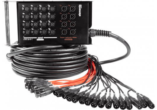 Las 16 entradas (conectores XLR hembra en la caja) se utilizan para enviar señales desde el escenario a la mesa de mezclas, como micrófonos o líneas DI. Las 8 salidas (conectores XLR macho en la caja) son retornos que se usan para enviar señales desde la mesa de mezclas de vuelta al escenario, por ejemplo, para alimentar los monitores de los músicos.