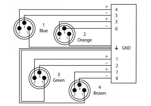 • Conector 2: 4 x NEUTRIK XLR macho de 3 pines